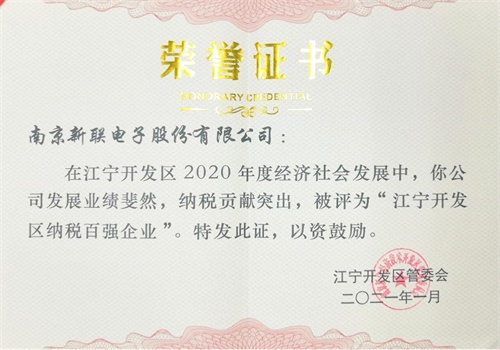 新聯(lián)電子、新聯(lián)電能云雙雙入榜“2020年度江寧開發(fā)區(qū)納稅百強(qiáng)企業(yè)”名單