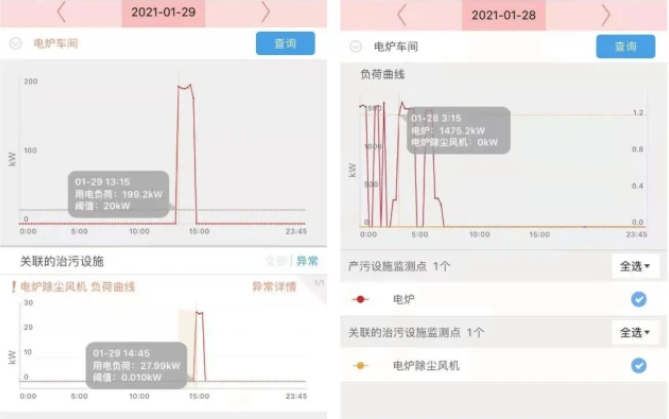 2021年1月29日,蘇州市用電工況監(jiān)控系統(tǒng)發(fā)出預(yù)警,顯示某有限公司廢氣治理設(shè)施用電量數(shù)天內(nèi)連續(xù)低值,疑似未與生產(chǎn)設(shè)施同步運(yùn)行。根據(jù)預(yù)警線索,昆山市生態(tài)環(huán)境局執(zhí)法人員第一時(shí)間對(duì)該公司進(jìn)行了現(xiàn)場(chǎng)檢查。通過調(diào)取該企業(yè)1月27日-28日用電數(shù)據(jù),查實(shí)1月27日夜間至1月28日凌晨,該企業(yè)熔鐵電爐用電數(shù)據(jù)在1500kW以上,但配套的布袋除塵風(fēng)機(jī)沒有用電數(shù)據(jù)。昆山市生態(tài)環(huán)境局對(duì)該公司未采取集中收集處理等措施控制、減少粉塵和氣態(tài)污染物排放的環(huán)境違法行為予以立案處罰。