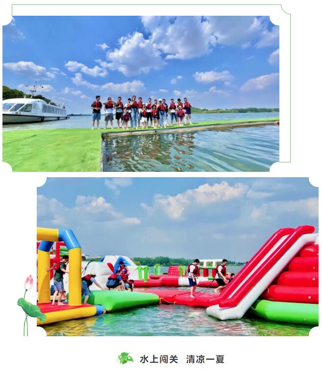 此次團(tuán)建活動(dòng)既有清爽刺激的水上沖浪闖關(guān),也有講究團(tuán)隊(duì)配合的旱地冰壺挑戰(zhàn),還有趣味盎然的極限飛盤、蒙眼對(duì)抗等精彩游戲,另外還有垂釣、采摘等休閑項(xiàng)目。在活動(dòng)中,大家相互分工、密切合作,創(chuàng)作獨(dú)具特色的隊(duì)名、隊(duì)旗、口號(hào),用霸氣的隊(duì)名和口號(hào)凸顯團(tuán)隊(duì)氣勢(shì),通過小組合力完成既定游戲任務(wù)?;顒?dòng)中歡聲笑語(yǔ)不斷,有對(duì)抗的刺激、有助威的歡呼、有拼搏的激動(dòng)、有勝利的興奮!團(tuán)隊(duì)的成功與目標(biāo)的順利達(dá)成,讓大家在突破自我中,實(shí)現(xiàn)了精神的超越。