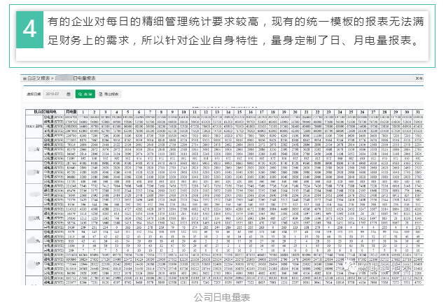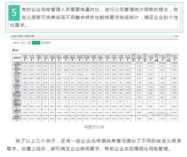 當客服接到以上這些反饋后,會與各企業(yè)進行耐心溝通。這時,有的企業(yè)就需要增加自定義報表,方便企業(yè)自行進行統(tǒng)計。如公司電費、各部門電費、電量對比表、日負荷情況等報表。