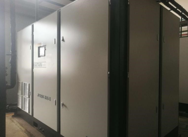 2018年公司所做的最重要的節(jié)能項(xiàng)目是空壓機(jī)改造更新項(xiàng)目,從2017年下半年就開(kāi)始調(diào)研兩級(jí)壓縮型空壓機(jī),共調(diào)研了三個(gè)品牌,最終選擇在無(wú)錫地區(qū)使用較多的開(kāi)山兩級(jí)壓縮空壓機(jī)。先根據(jù)測(cè)試數(shù)據(jù)確定使用200KW工頻和185KW變頻機(jī),目標(biāo)是每小時(shí)節(jié)能79kwh。7月底開(kāi)始投入使用,在用氣量峰值出現(xiàn)時(shí),壓力降比較大,造成末端設(shè)備因壓力低而停機(jī),盡管正常情況下使用是沒(méi)有問(wèn)題的,而且185kw變頻機(jī)使用頻率在25Hz。后經(jīng)過(guò)8、9、10三個(gè)月的數(shù)據(jù)積累和分析,確定再增加一臺(tái)11m3/h的永磁變頻兩級(jí)壓縮空壓機(jī)(功率55kw),從11月13日投入使用以來(lái)經(jīng)統(tǒng)計(jì),節(jié)能效果明顯。使用的空壓機(jī)節(jié)能核心技術(shù)是兩級(jí)壓縮和變頻以及永磁變頻。