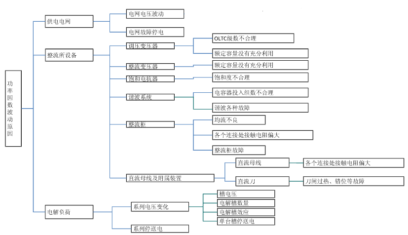 分路功率因數(shù)偏低往往反映用電分路能源利用效率不高,但考慮到電鍍對整個生產(chǎn)的重要性,對該問題進行了系統(tǒng)分析。